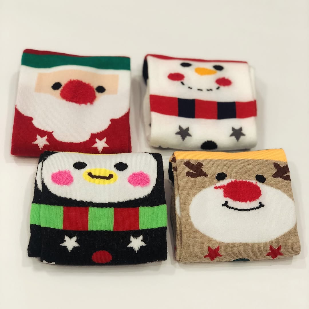 جوراب کریسمسی ساق بلند طرح عروسکی بوکله برجسته