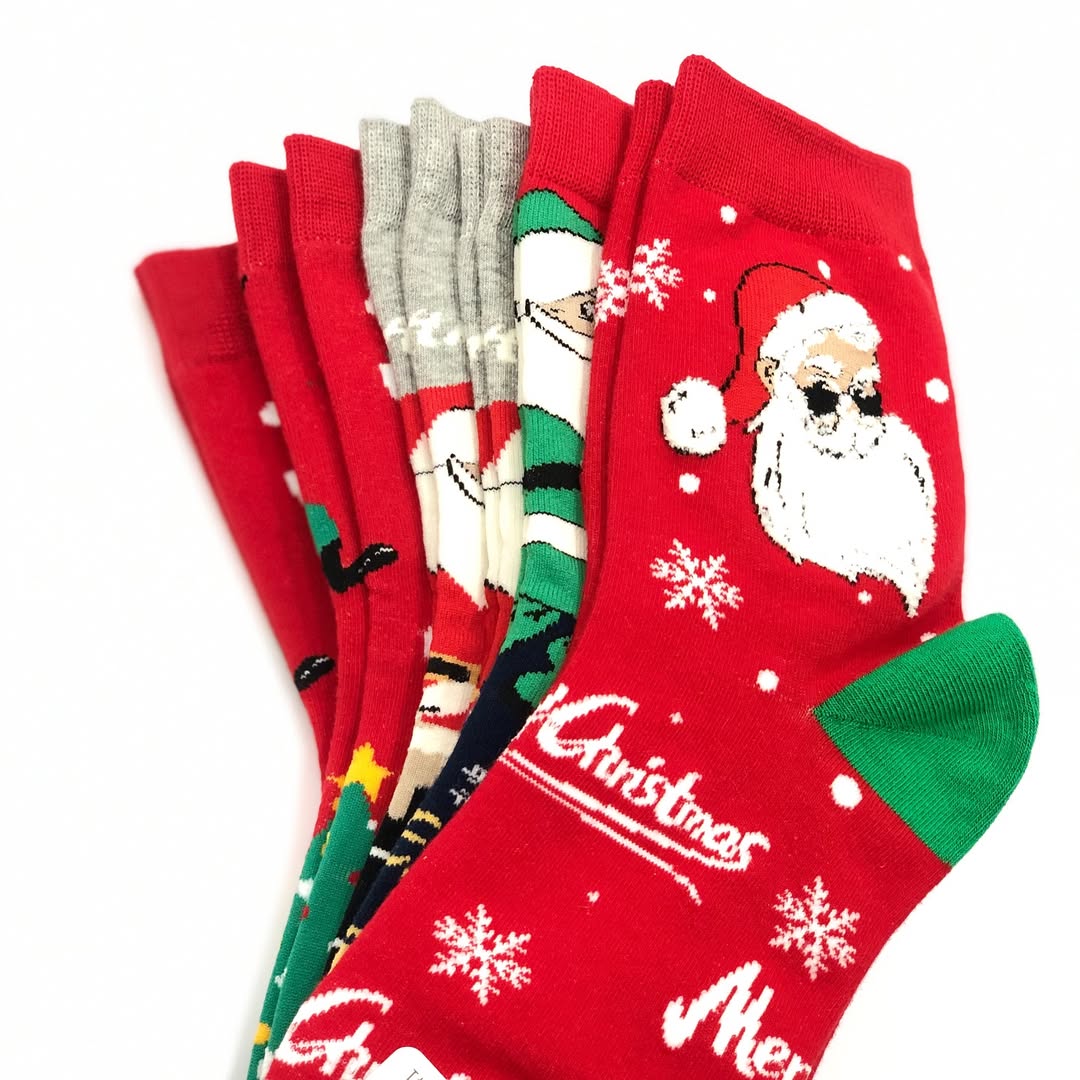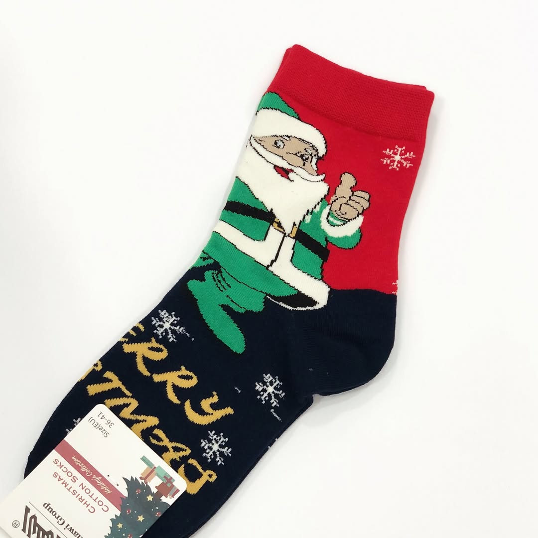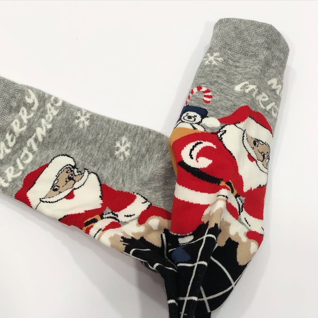جوراب کریسمسی جذاب با دو مدل طرحدار عروسکی و گوشدار بوکله برجسته. کیفیت اعلا و سایز فیری از ۴۱.