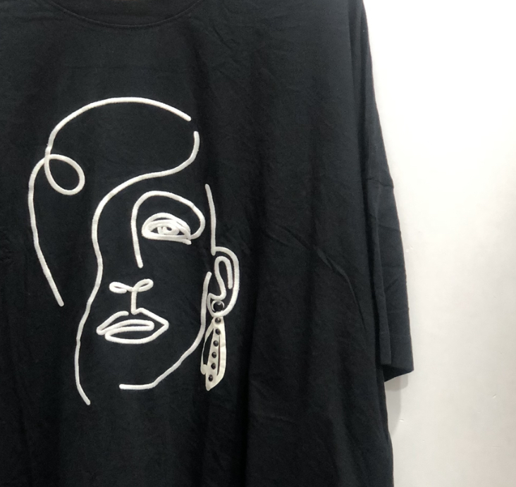 طرح روی تیشرت: طرح صورت گلدوزی شده