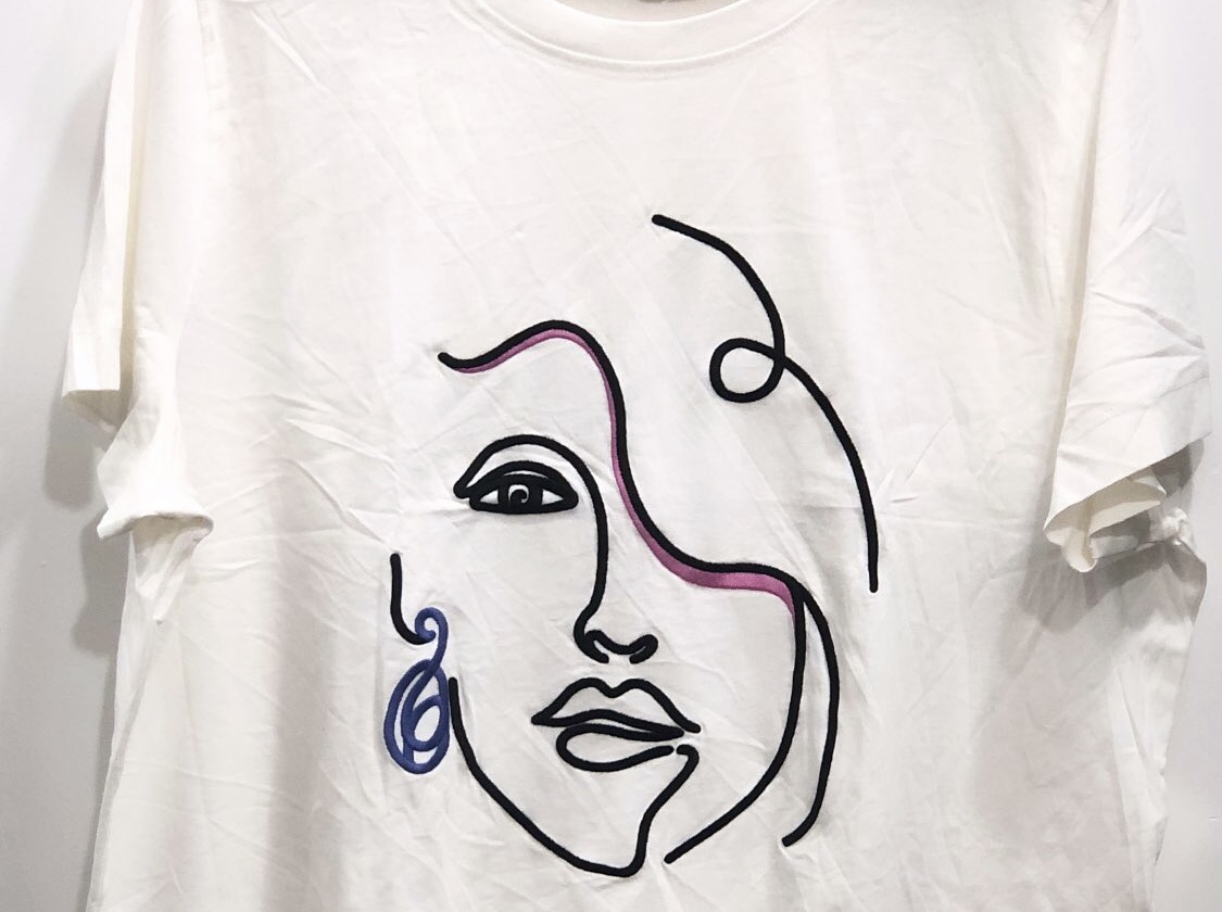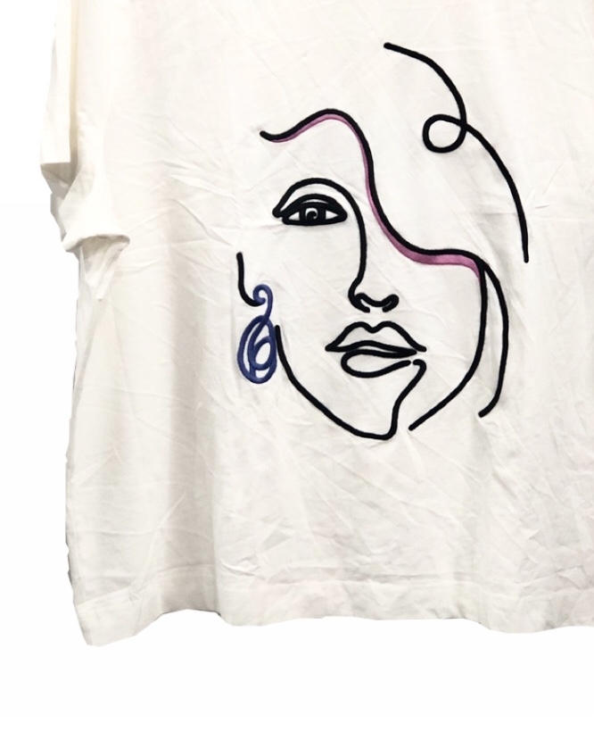 تیشرت شیری طرح صورت گلدوزی شده وارداتی