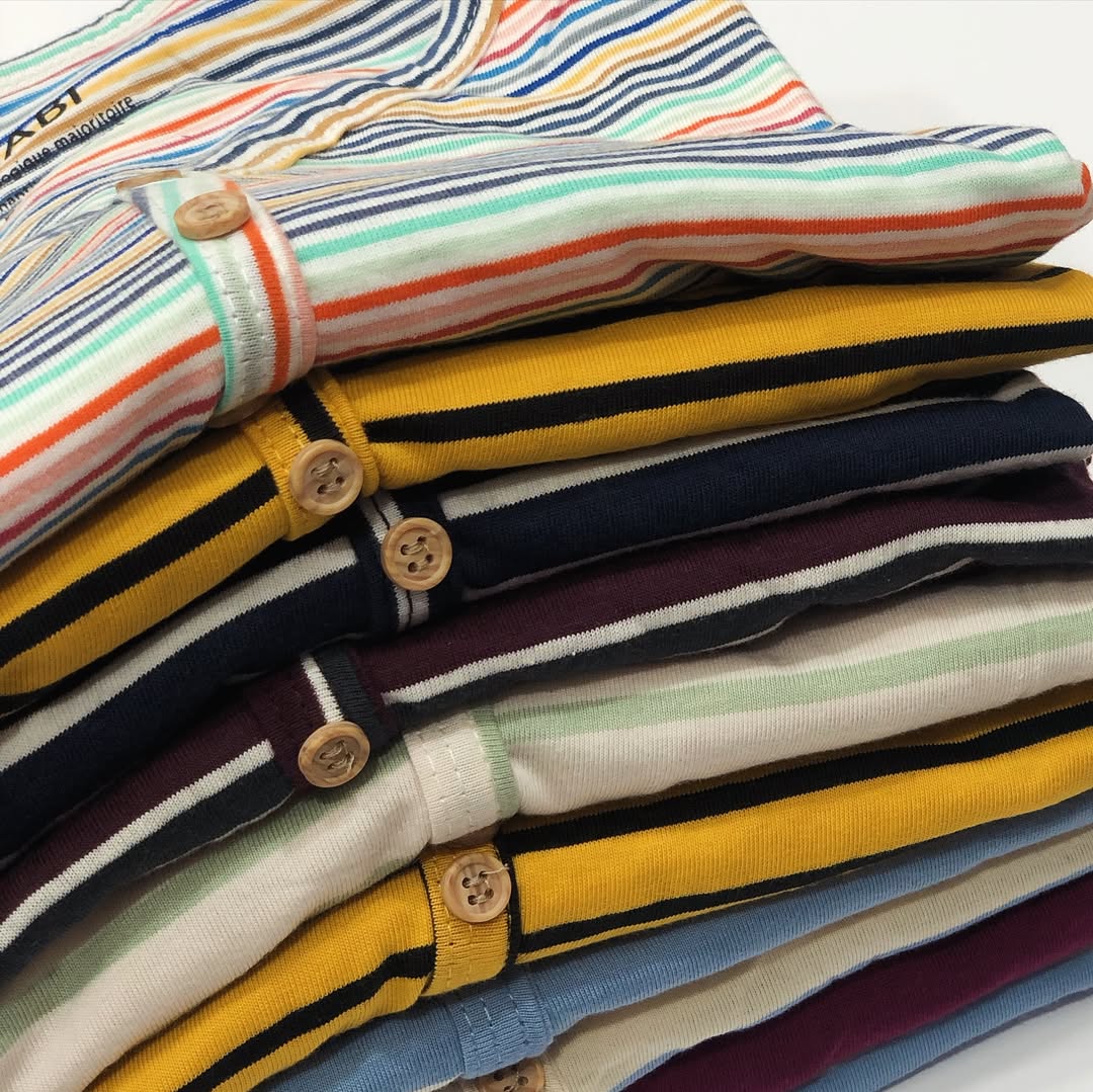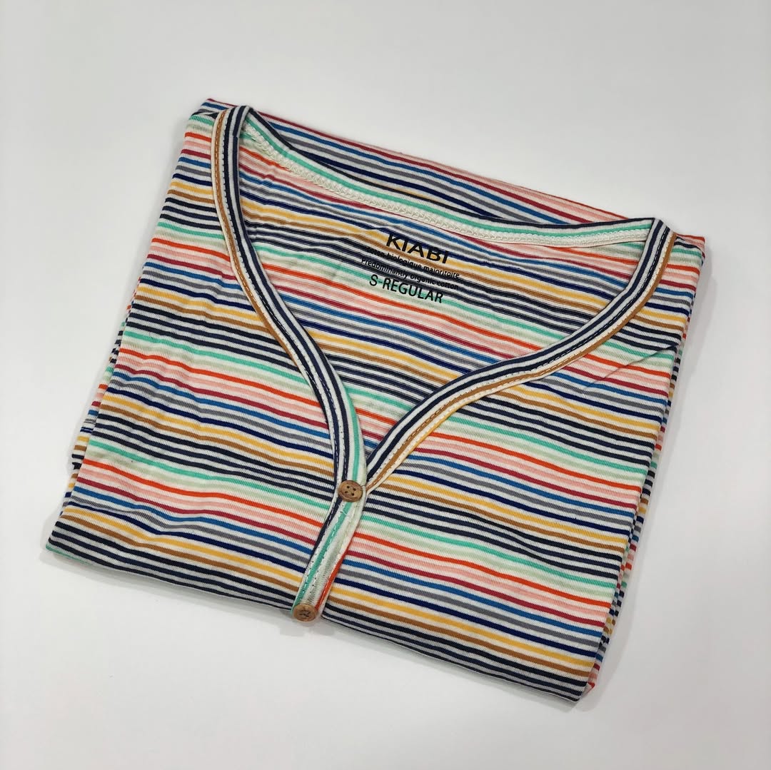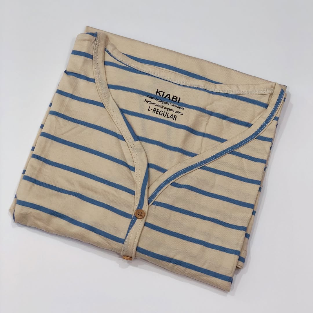 تیشرت راه راه طرح سه دکمه وارداتی از برند KIABI خوشگل و باکیفیت با تنخور زیبا اصولا راه راه همیشه جذابه