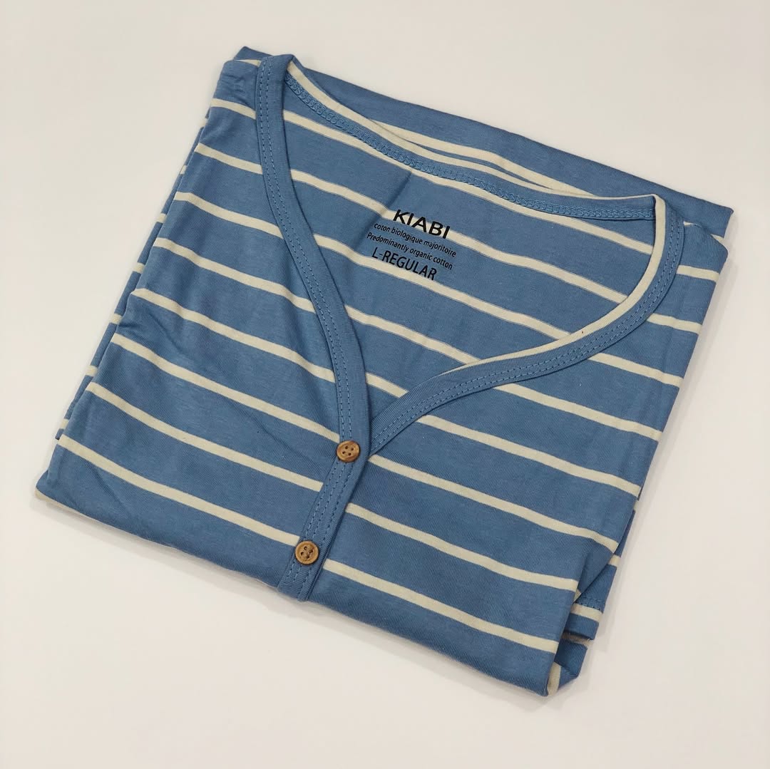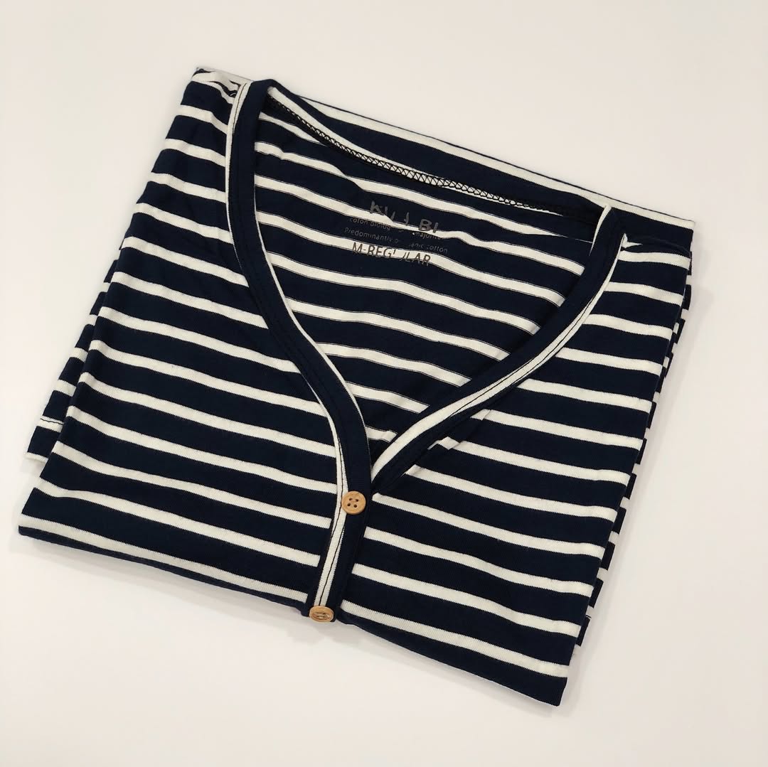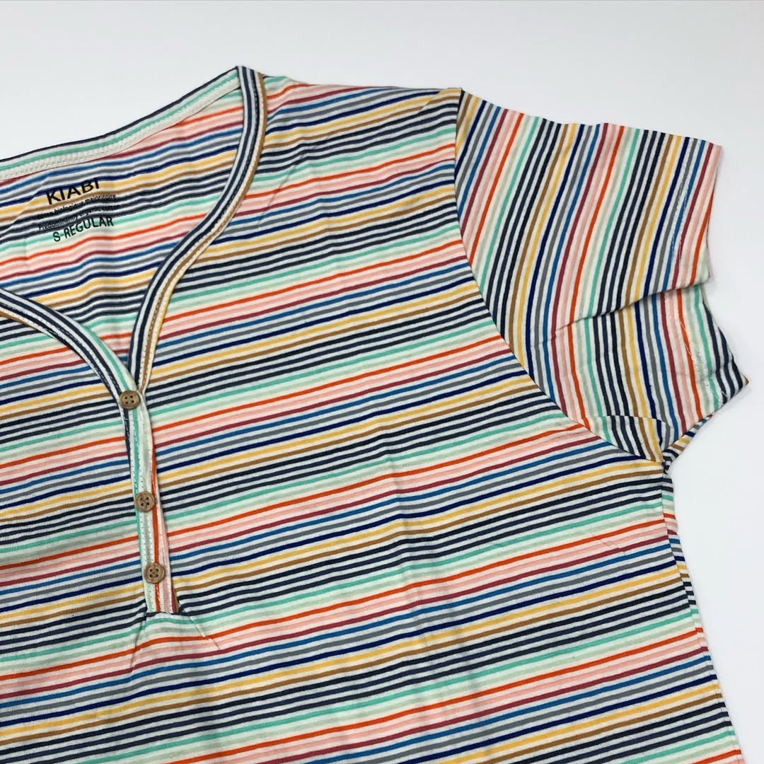 تیشرت راه راه طرح سه دکمه وارداتی از برند KIABI خوشگل و باکیفیت با تنخور زیبا اصولا راه راه همیشه جذابه