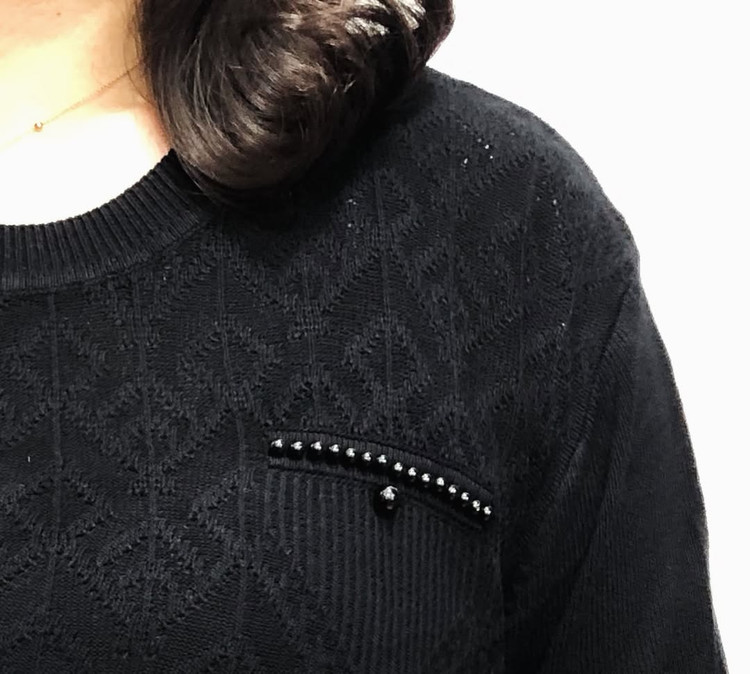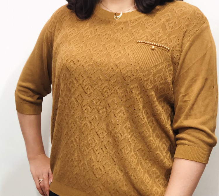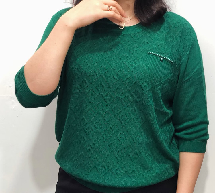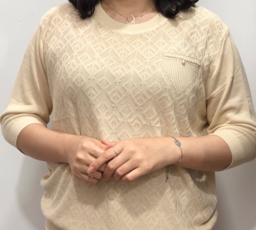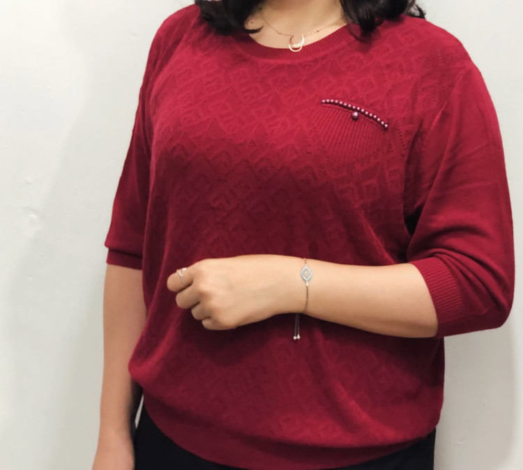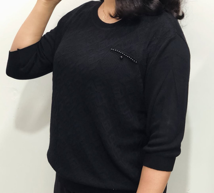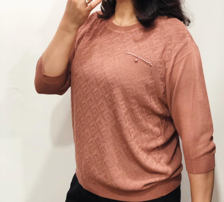 بلوز کریستال آستین سه ربع طرح جیب مرواریدی