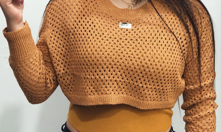 تاپ رکابی بافت نرم و رویه کار آستین بلند قد کراپی و لونه زنبوری
