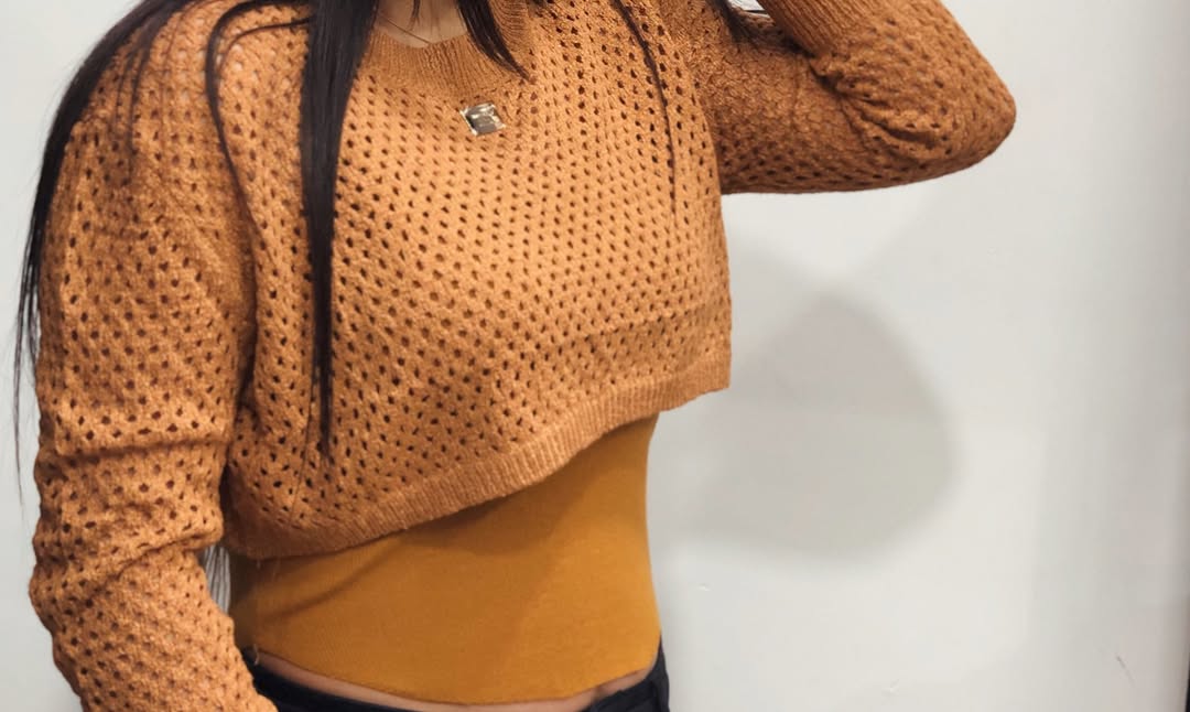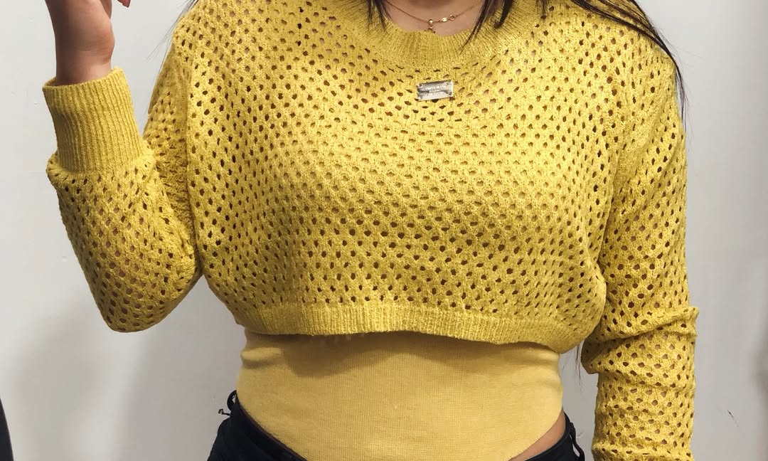 تاپ رکابی بافت نرم و رویه کار آستین بلند قد کراپی و لونه زنبوری