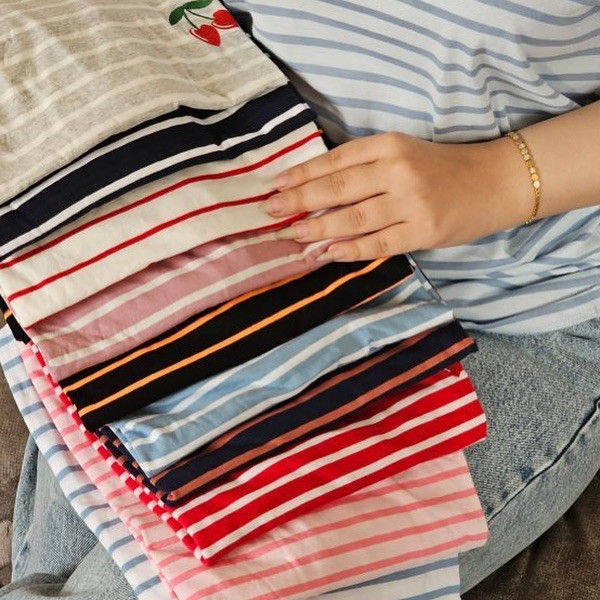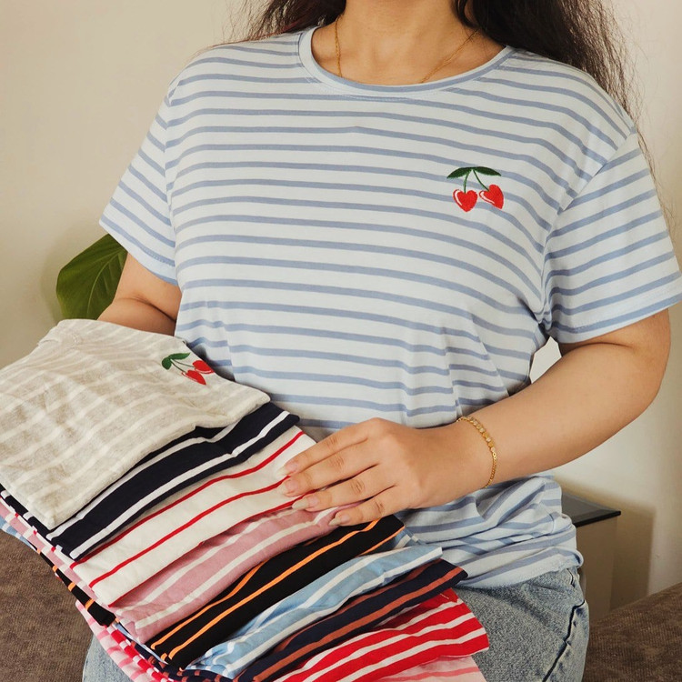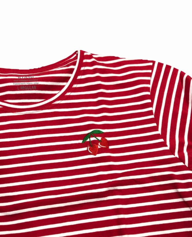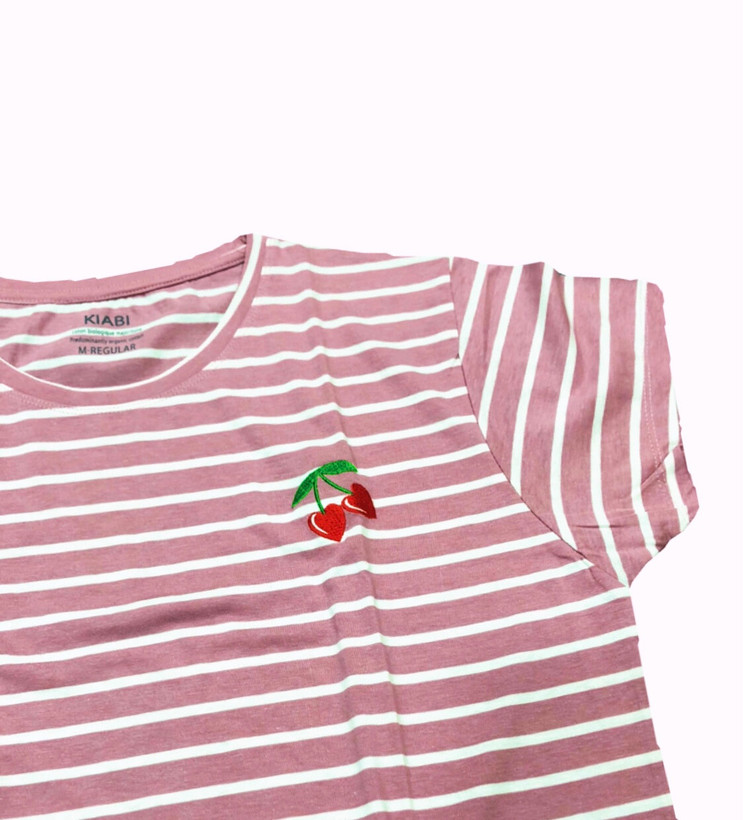 طرح تیشرت: راه راه با طرح گیلاس گلدوزی شده