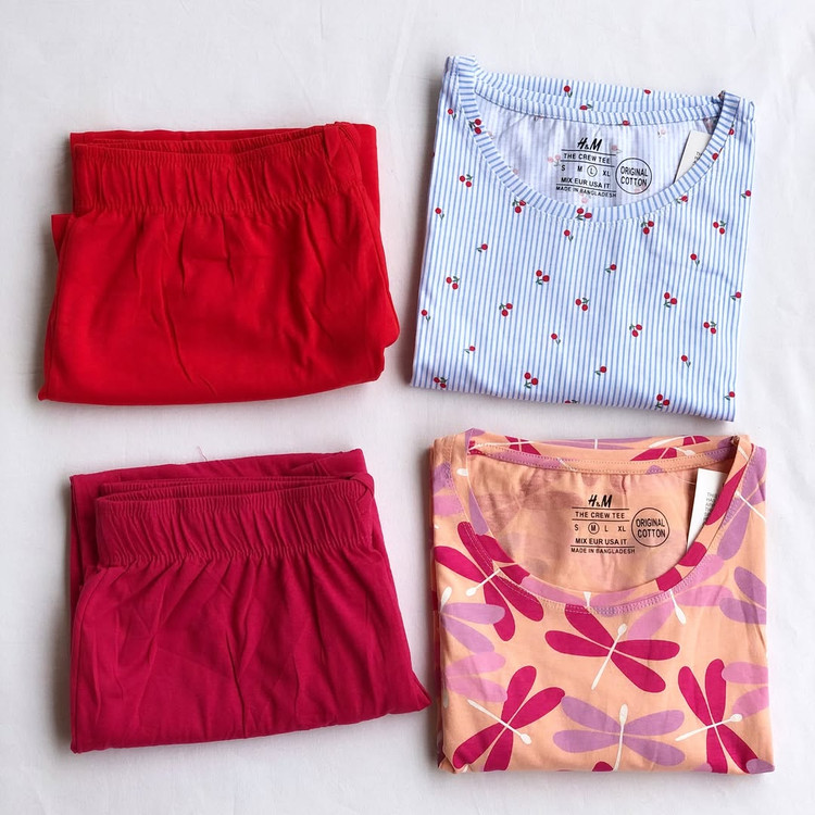 ست تیشرت شلوارک نخی وارداتی سایز اسمال تا ایکس لارژ