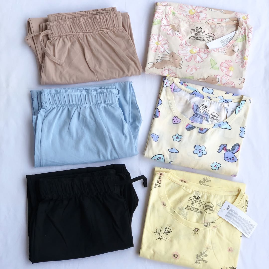 ست تیشرت شلوارک نخی وارداتی سایز اسمال تا ایکس لارژ