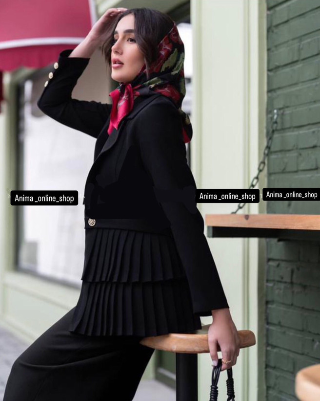 کت کِرپ لَمه پایین پیله با رنگ مشکی، مناسب برای سایزهای ۳۶ تا ۴۶ ۴۸. این کت در شب حالت شاینی دارد و فوق العاده تنخور جذاب است.