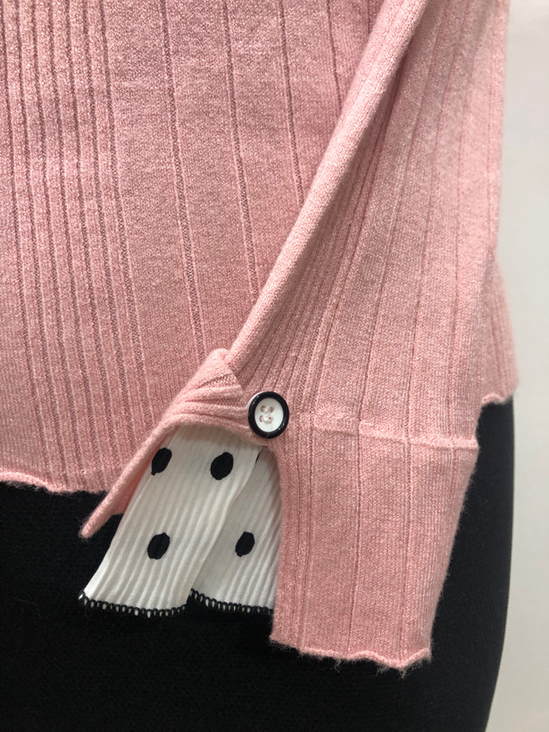 نوع آستین: آستین بلند، لبه آستین تور خال خالی کار شده که جذابش کرده